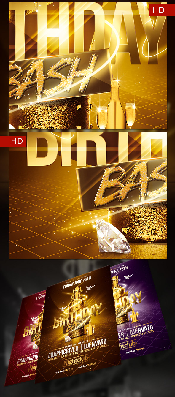 Creation Gold Birthday Bash "Psd Flyer Template"
